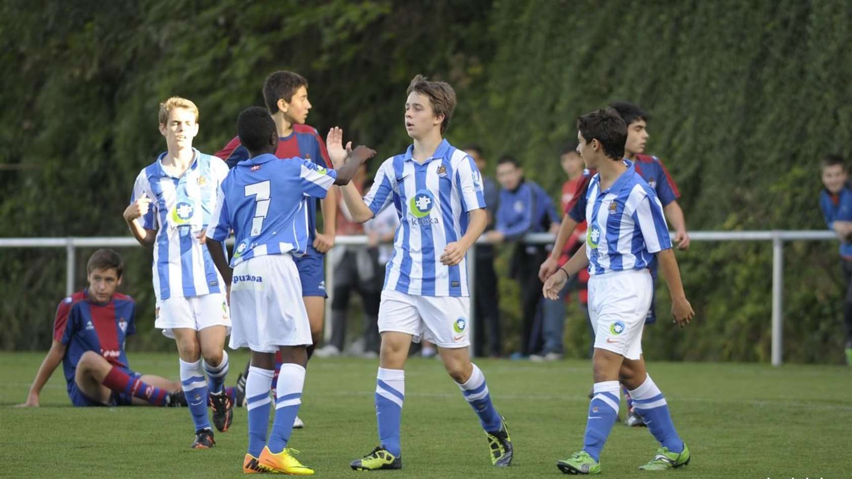 El partido se disputó el domingo al mediodía en las instalaciones de Madroa. La Real comenzó dominando el partido y teniendo la posesión del balón. Tuvo un par de muy buenas ocasiones para estrenar el marcador pero no acertó de cara a gol. A partir del minuto 20, las fuerzas se igualaron y el equipo local se puso por delante (2-0) sin crear demasiado peligro. Así se llegó al descanso. En la segunda parte la dinámica fue muy parecida. Los txuri urdin salieron al ataque y gracias a dos goles de Capilla empataron el partido. En los últimos minutos el rendimiento del Celta bajo y los guipuzcoanos remataron el encuentro con el tercer gol marcado por Arrieta. El partido de vuelta se disputará en el campo Z7 de Zubieta el próximo domingo a las 12. Alineación Real Sociedad:Otaño; Odriozola, Tarantino, Ugarte, Prieto; Sarriegi; Calvillo, Olabe, Guridi, Olaizola; Capilla. También jugaron La Peña, Sangalli, Ibardia y Arrieta.En el partido participaron todos los jugadores del Easo y algunos jugadores de la plantilla del División de Honor. El Easo tuvo la posesión del esférico pero los contrarios estaban muy bien colocados en defensa. En un contraataque rápido el equipo francés se adelantó en el marcador, aunque los guipuzcoanos remontaron antes del descanso poniéndose 2-1. En la segunda parte, el Tolouse bajo el ritmo y perdió el orden defensivo demostrado en la primera parte. El Easo tuvo varias oportunidades de peligro y remató el partido marcando dos goles más.El conjunto txuri urdin participó en la Copa Coca-cola celebrada en las instalaciones de Lezama. En el campeonato participaron ocho equipos del País Vasco: los primeros cinco clasificados de Liga Vasca y los primeros clasificados del Cadete de Honor de Araba, Gipuzkoa y Bizkaia. Se formaron dos grupos de cuatro y cada equipo jugó dos partidos. Los realistas se enfrentaron al Santutxu al que ganaron por 1-0 y empataron contra el Danok bat 0-0. Los guipuzcoanos perdieron en los penaltis contra este último. Hicieron un buen campeonato, dejando la puerta a cero y mostrando un juego muy fluido. La final la disputaron entre el Gernika y el Danok bat, siendo este último el clasificado para la siguiente fase.Esta jornada no disputó ningún partido. El próximo sábado jugará la final de Gipuzkoa contra el Real Unión. El partido se jugó el sábado a la mañana en el campo Z4 de Zubieta. La Real tuvo un gran dominio durante todo el partido, aunque el Hernani lo intentó y trabajó duro para crear peligro. Alineación oficial:Urdangarin; Álvarez, Arrieta, Arruabarrena, Cantero; Salaberria, Garmendia; Guruzeta, Garrido, Recio; Uzkudun. También jugaron Ruiz Ceverio, Elizondo, Odriozola y Sánchez. El partido se jugó el sábado al mediodía en el campo Z4 de Zubieta. Los locales intentaron hacer un juego combinativo teniendo la posesión de la pelota. El Lazkao, por su parte, salió muy fuerte al campo y presionó muy arriba, poniendo en apuros a la defensa txuri urdin. El comienzo del encuentro estuvo muy igualado pero a medida que corrían los minutos la Real se hizo con el dominio. Alineación oficial:Ayesa; Tijero, Revilla, Elizburu, Teijeira; Zubillaga, Beñat González eta Álvaro González; Arzak, Gurrutxaga; Nazabal. También jugó Ouono.