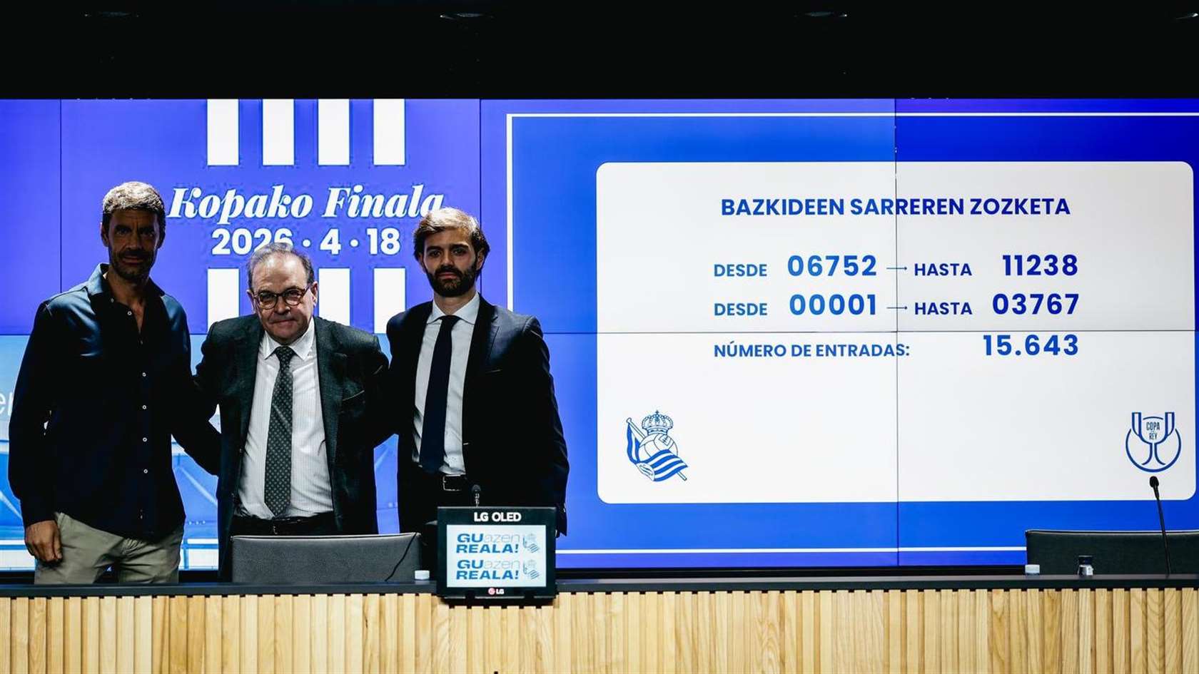 A partir de las 13:00, y ante notario, ha tenido lugar en la sala de prensa de Anoeta el sorteo de las entradas para la final de Copa del 18 de abril en La Cartuja. Todo el desarrollo del sorteo se ha podido seguir en directo en Real Sociedad TV.